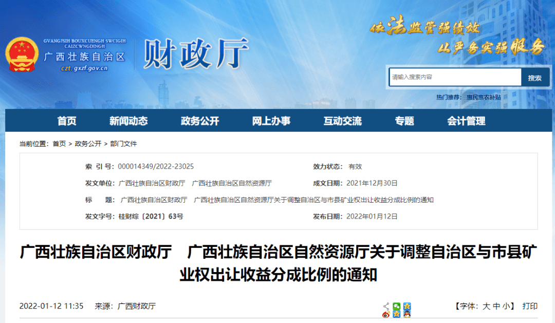 與此同時,廣西壯族自治區(qū)自然資源廳《關于印發(fā)全面推進砂石土類礦產“凈采礦權”出讓工作的通知》和《關于調整自治區(qū)與市縣礦業(yè)權出讓收益分成比例的通知》。明確廣西壯族自治區(qū)從2022年起全面實行砂石土類礦產"凈礦"出讓,鼓勵推進其他礦產"凈礦"出讓;礦業(yè)權出讓收益分成向基層傾斜,自治區(qū)本級分成比例調減10%以上。